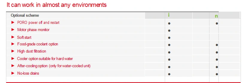 Нашите компресори предлагат охлаждащи течности с хранителен клас, високо филтриране на прах и охладители за твърда вода и други опции, адаптирани към тежки среди, които могат да отговорят на вашите многобройни нужди от приложения.