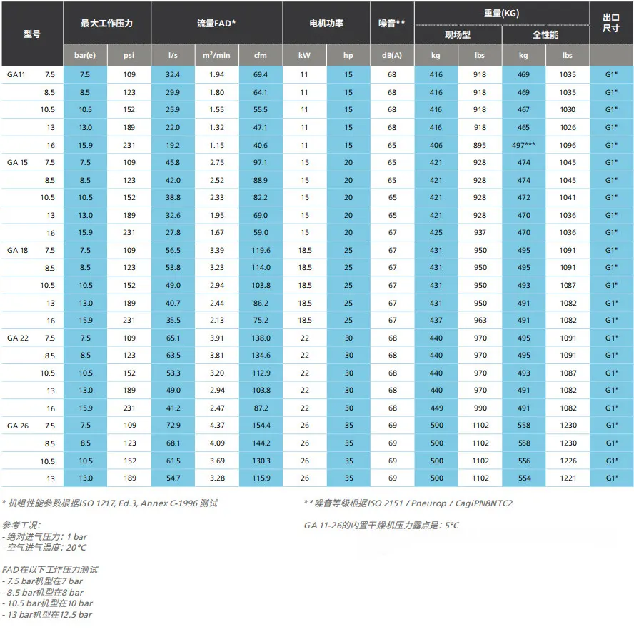 ·GA11-26 използва нов ротор и високоефективен двигател IE2/IE3, който е издръжлив и ефективен.