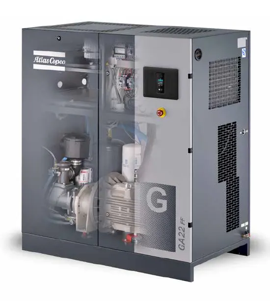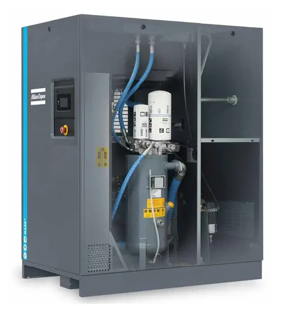 ·Винтовият компресор с впръскване на масло използва основната задвижваща система на Atlas Copco и ефективна скоростна кутия за много висока надеждност