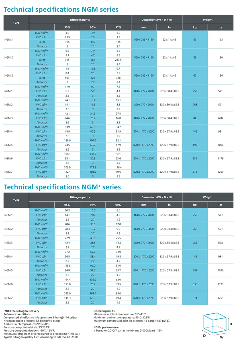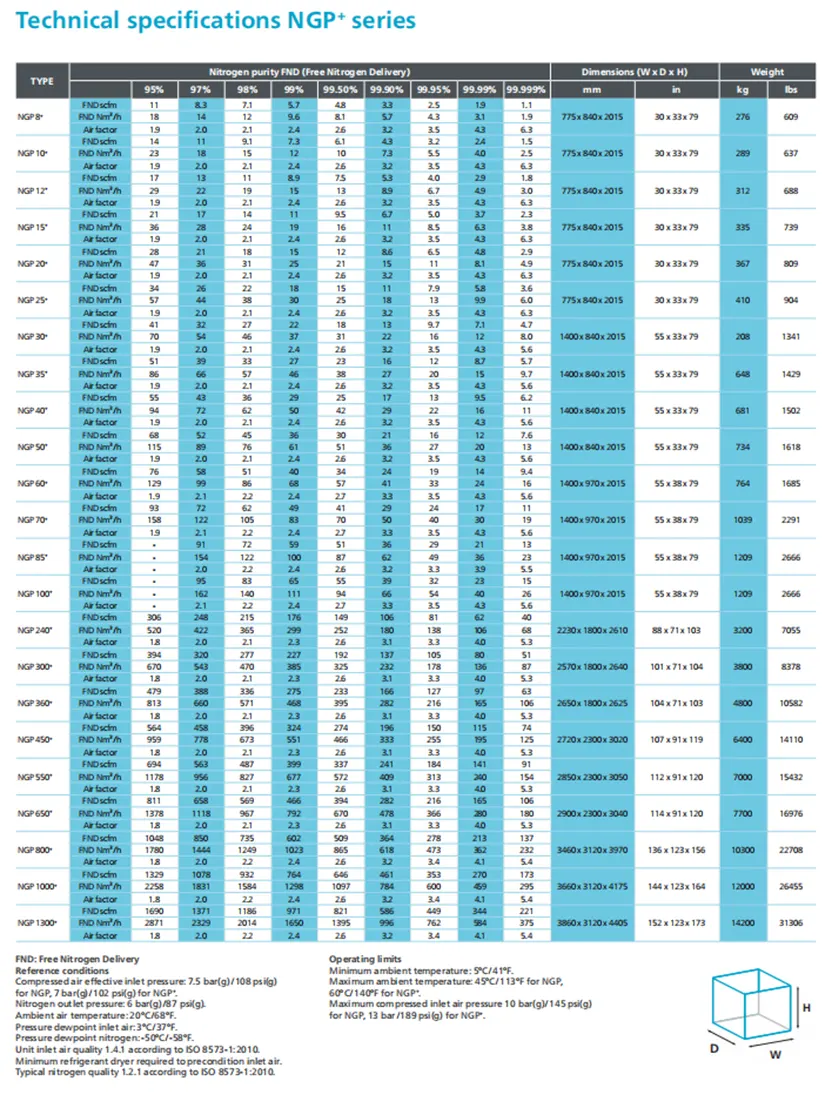 Адсорбционният азотен генератор с промяна на налягането NGP предлага от 95% до 99% чистота на азота, за да отговори на вашите изисквания за качество.