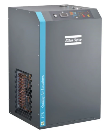 Изсушителят на охладения въздух Atlas Copco тип F използва топлообменник три в едно, съчетаващ сепаратори въздух/въздух, въздух/хладилен агент и вода. Това ефективно премахва течната вода, отделена след охлаждане, и предварително охлажда сгъстения въздух, подобрявайки ефективността на топлообмена. Едновременно с това той загрява дехидратирания сгъстен въздух до температура с 10°C по-ниска от температурата на входа, като осигурява относителната влажност на сгъстения въздух след обработката под 50%, предотвратявайки корозията и постигайки истинския дехидратиращ ефект на хладилен въздушен изсушител.