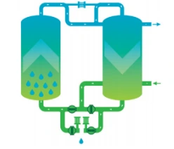 Докато едната кула е в режим на адсорбция, другата е в режим на регенерация. Газът за регенерация изисква определена част от готовия сгъстен въздух.