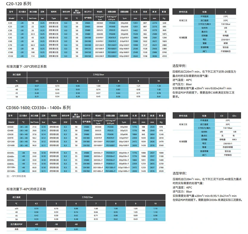 ■ Регенеративният адсорбционен изсушител без топлина от серията C е особено подходящ за приложения с малки въздушни обеми.