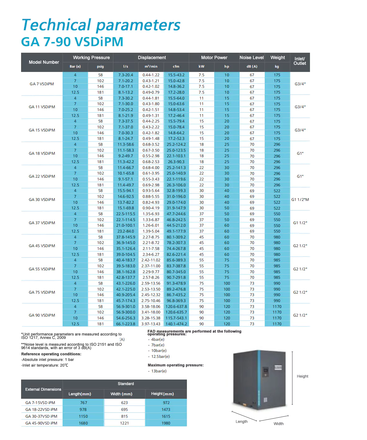 Серията VSDiPM на Atlas Copco може автоматично да регулира скоростта на двигателя, за да контролира прецизно и да отговори на изискванията на клиентите за използване на газ. В сравнение с компресори, задвижвани от определената скорост, VSD въздушният компресор с променлива честота спестява средно до 35% енергия.