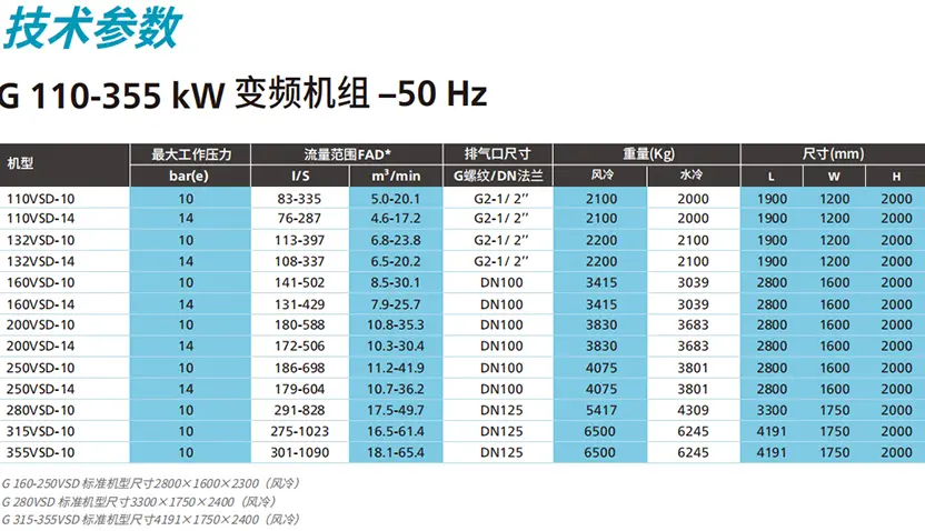 VSD въздушният компресор с променлива честота на Atlas е специално проектиран за продължителна работа. Задвижващата система използва ефективен двигател с постоянен магнит, който може да постигне отличен ефект на охлаждане на маслото. Технологията VSD може да постигне спестяване на енергия до 35%, а нейният по-малък отпечатък гарантира гъвкавост на монтажа.