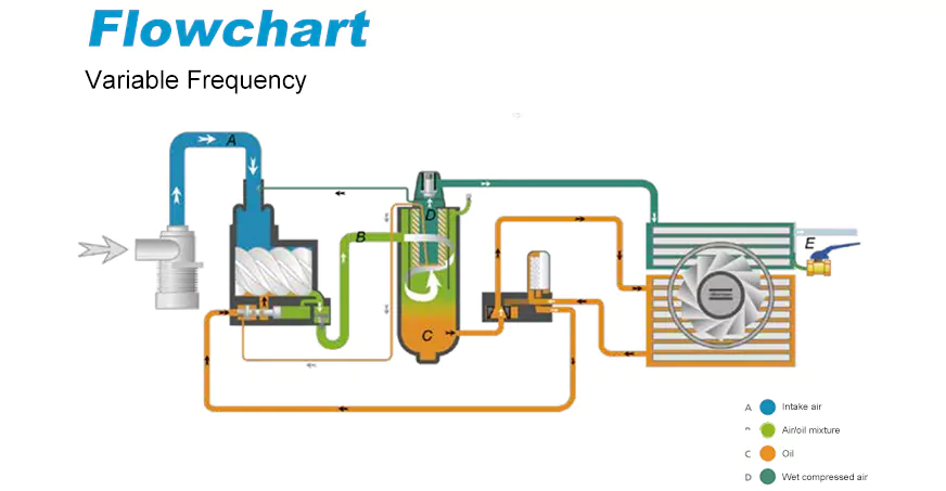 Честотният преобразувател, специално проектиран за въздушни компресори, може да осигури саморегулиращо се управление в необичайни ситуации.