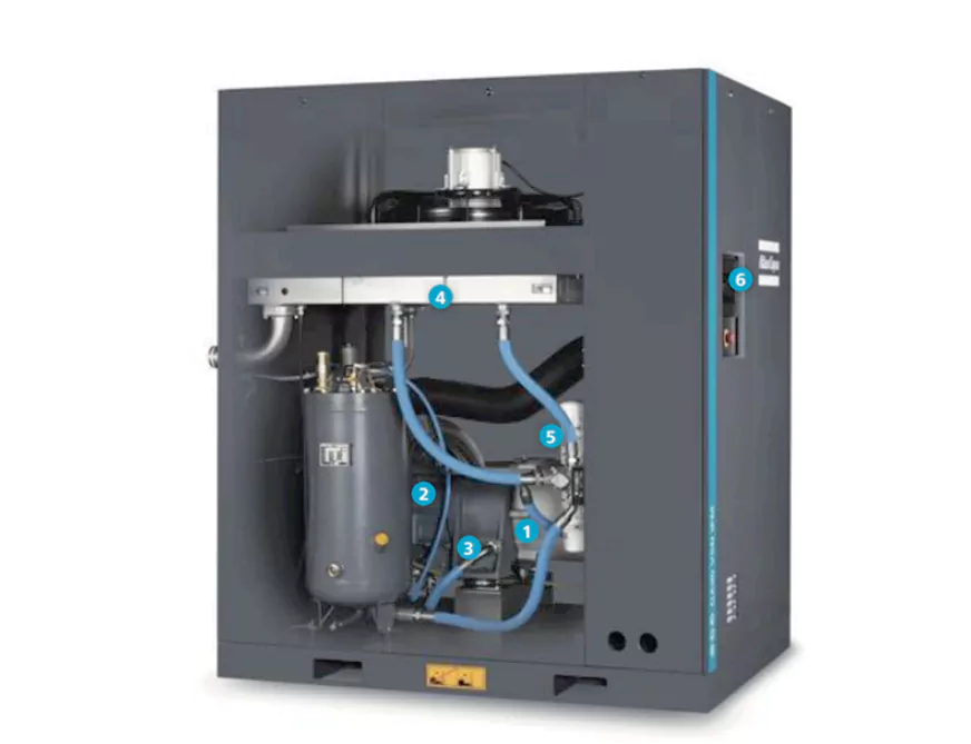 5. Всички компресори Atlas Copco G(L)VSD са преминали EMC тестване и сертификация. Работата на компресора няма да повлияе на външните устройства и обратното.